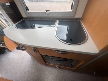 Cuisine super équipée, grand frigo Dometic automatique et four.