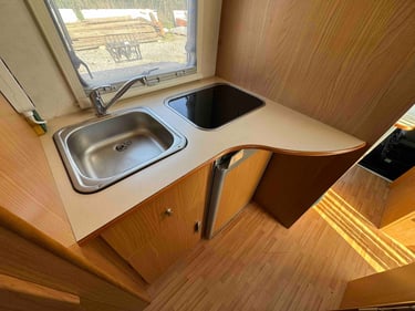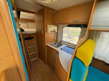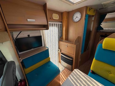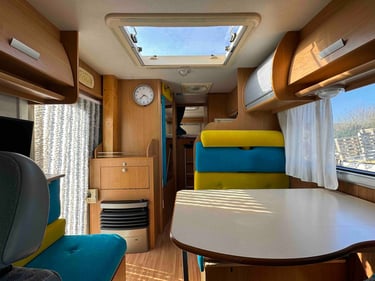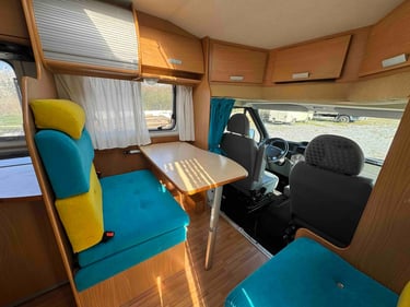 Lit permanent et une dinette avec les deux sièges pivotant.